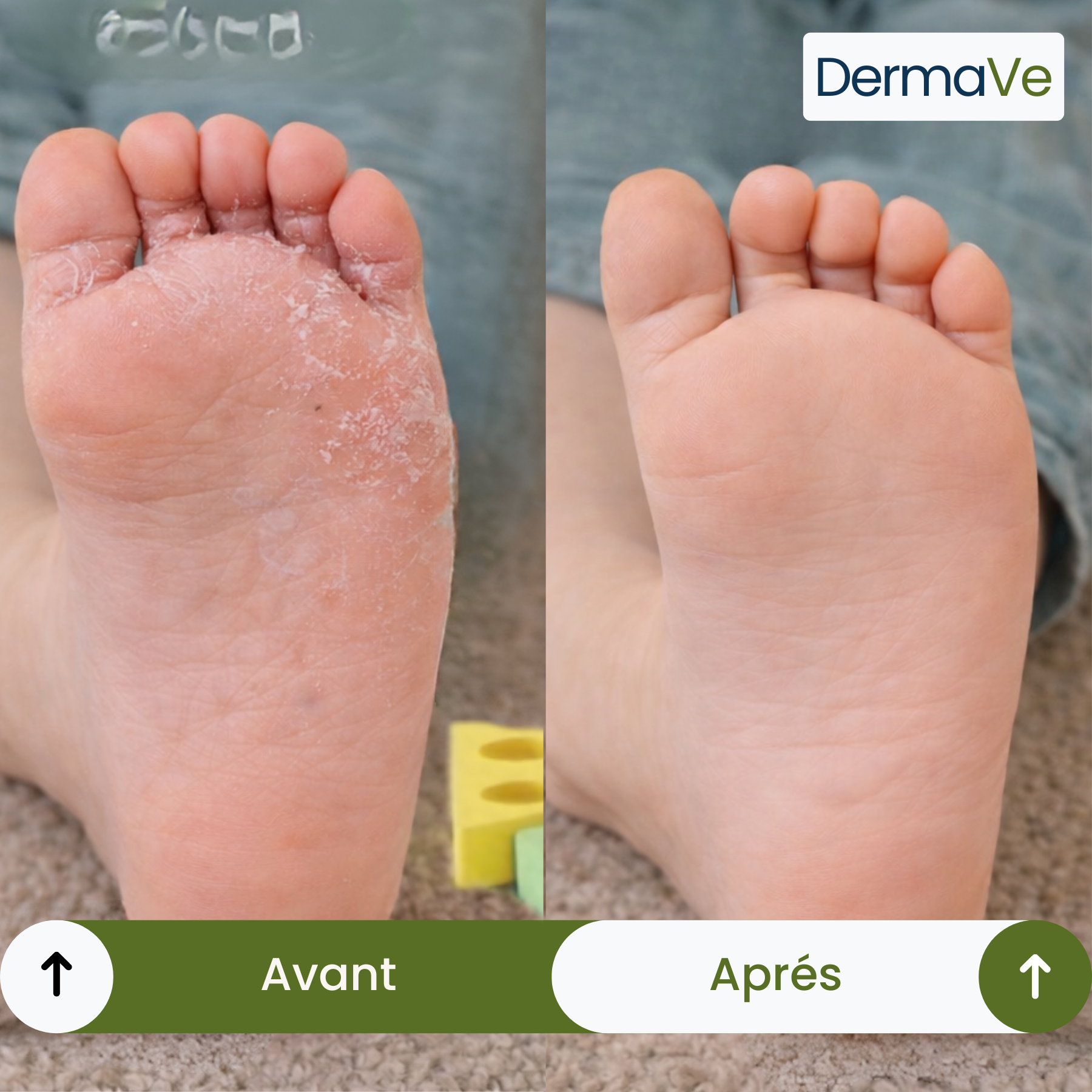 J’ai vraiment cru que c’était juste des pieds secs chez mon fils… j’ai mis des crèmes pendant des semaines. En fait, ça ne faisait qu’empirer. On a remplacé le savon par DermaVe et franchement la différence s’est vue assez vite. Il se gratte beaucoup moins.