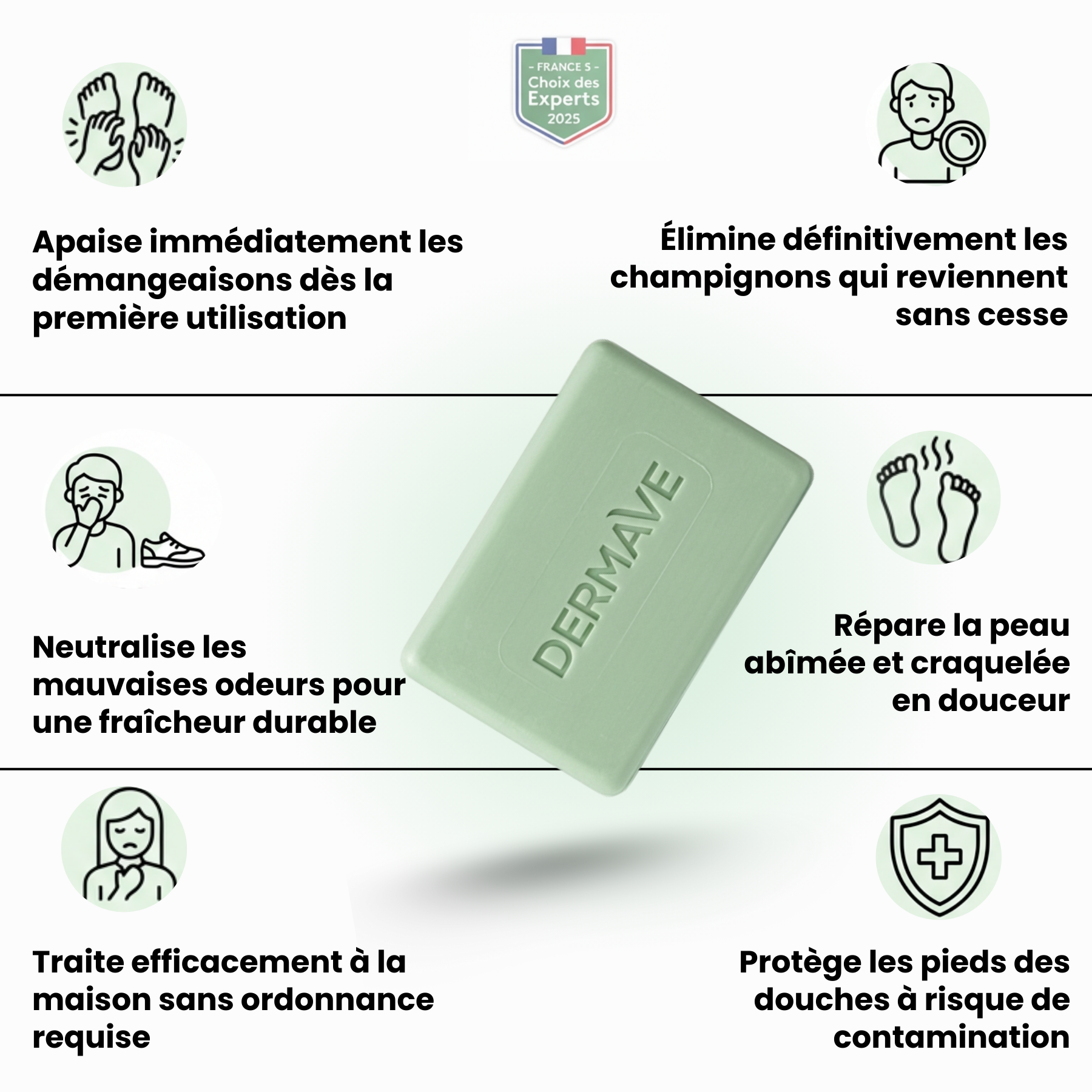 Prévenez la propagation de votre INFECTION grâce au pouvoir antifongique du Savon DermaVe® qui élimine le champignon à la racine,